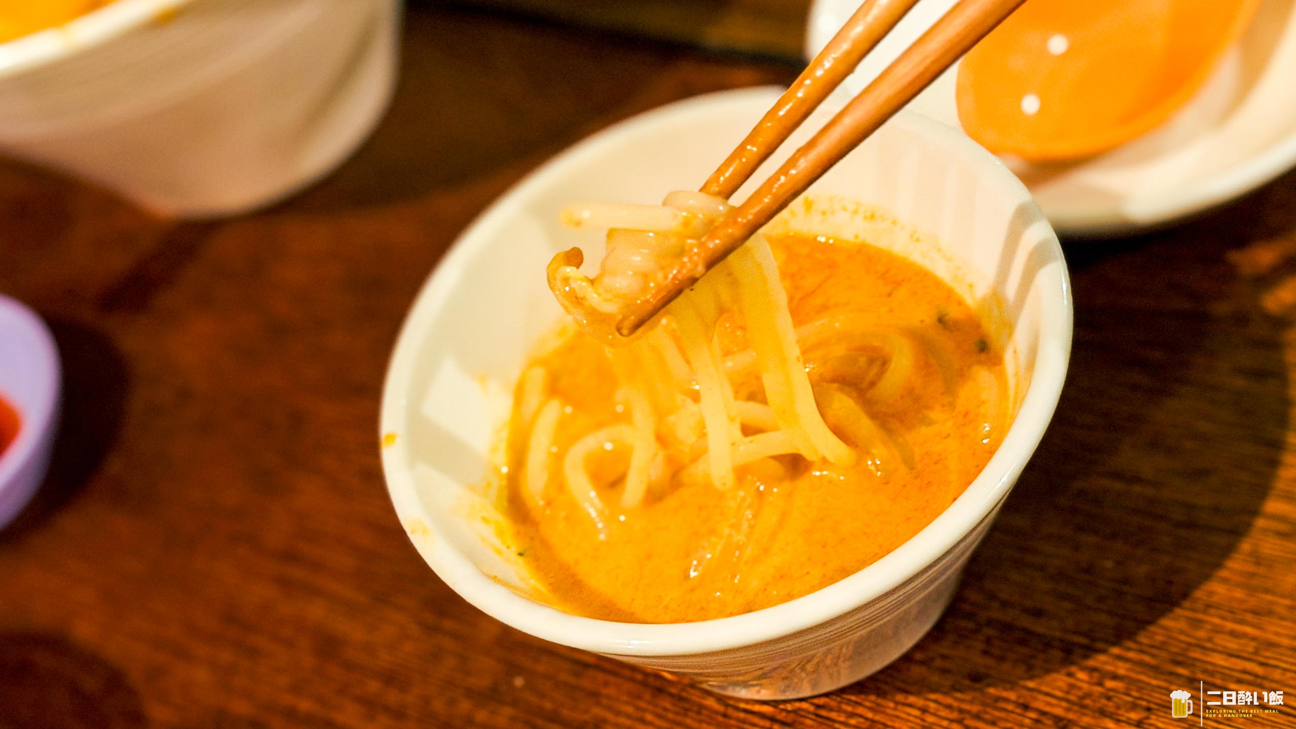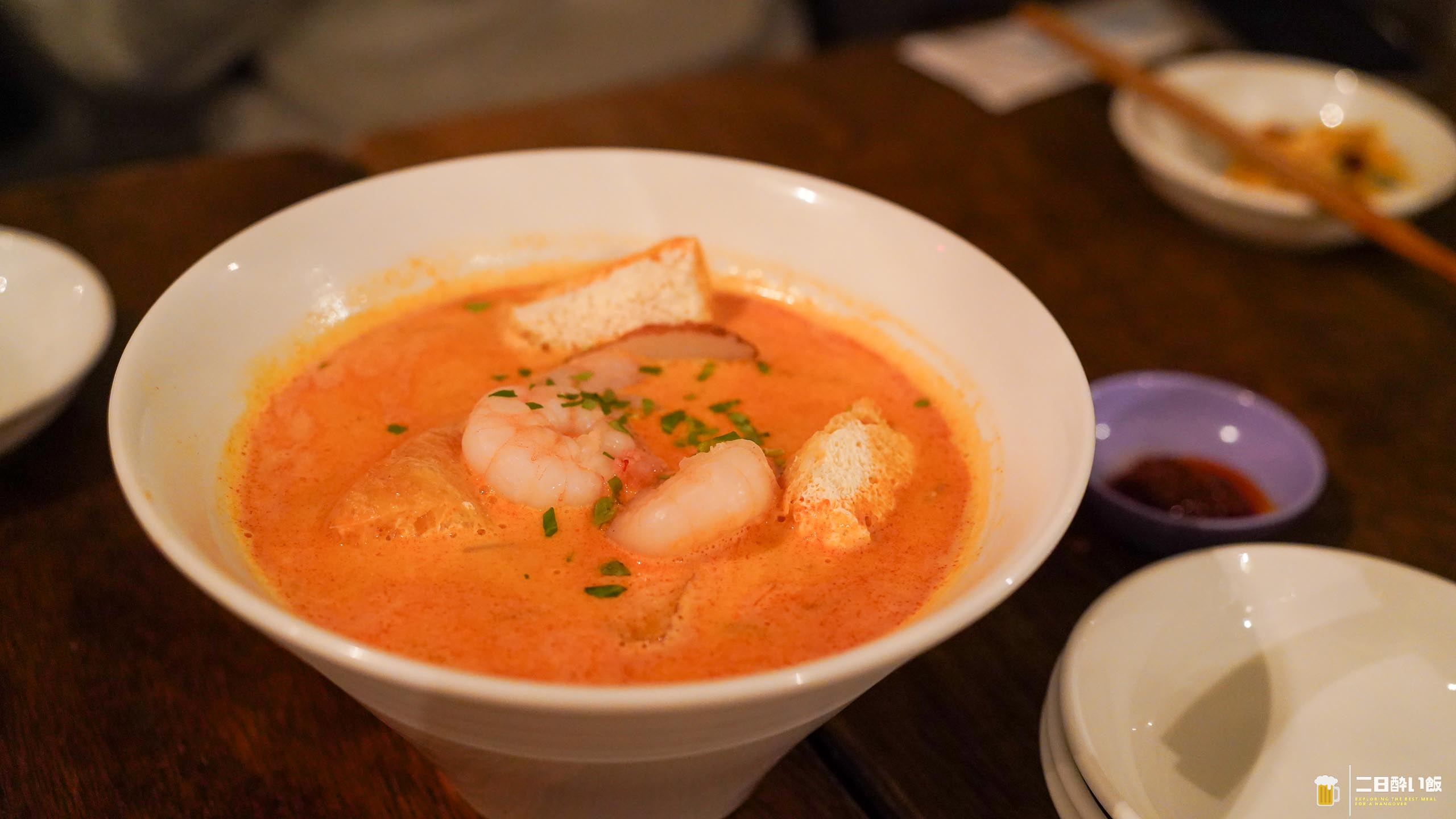 スープを飲んでみると、おいしい!ココナッツミルクのコクと海老の旨味が重なった濃厚なスープ。クリーミーな口当たりの中にスパイスの香りが立ち上がり、ラクサ特有のエスニックな香りが広がります。辛さは強すぎず、じんわりと身体が温まるような刺激で、辛いの苦手な人でも全然気にせず食べられると思う。海老の出汁が溶け込んだスープはコクが深く、麺にしっかりと絡んで満足感があります。サンバルを少し加えると、ピリッとした辛味が加わり味わいが引き締まるのも魅力。濃厚でありながら重すぎず、最後までスープを飲みたくなります。