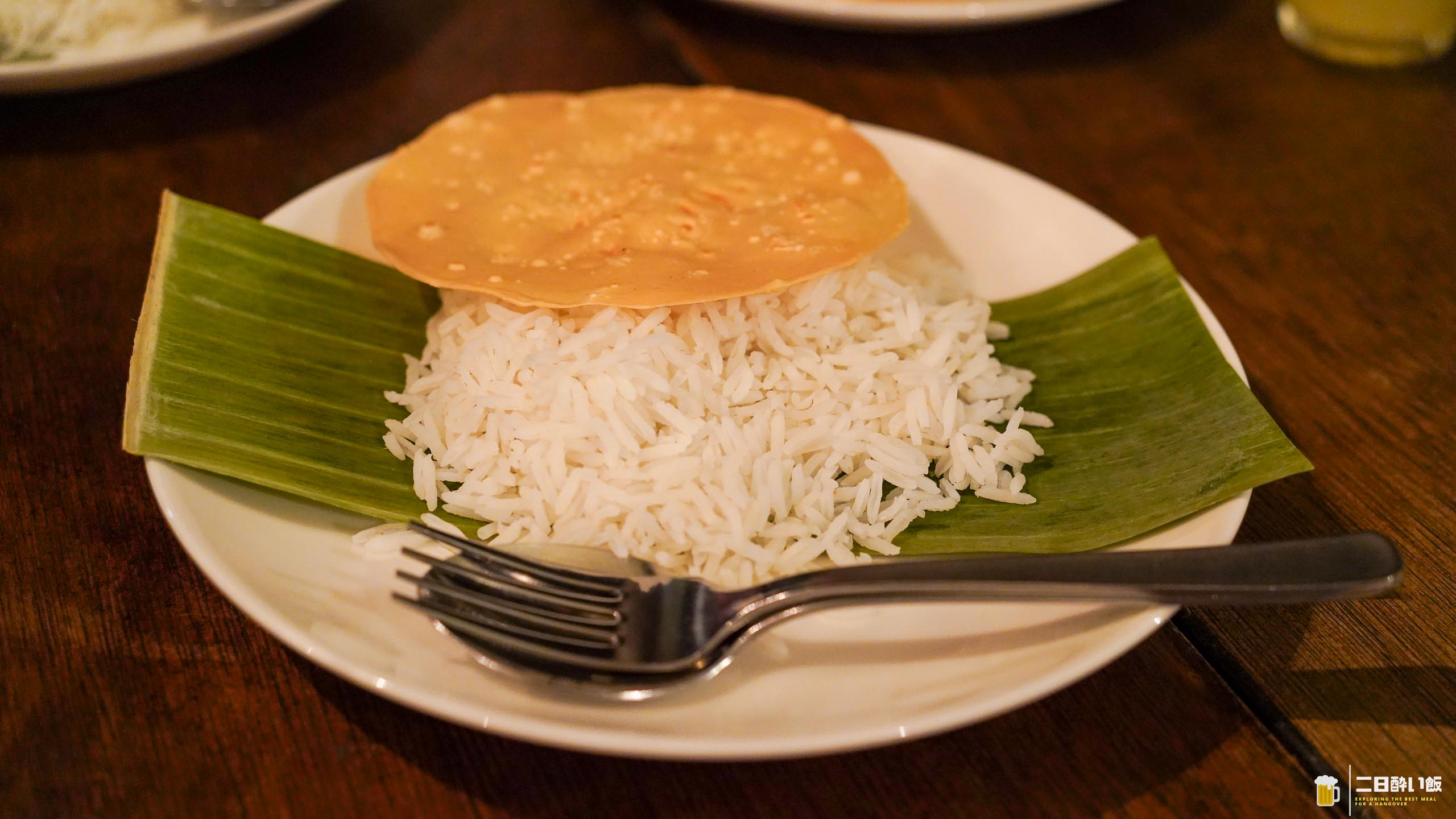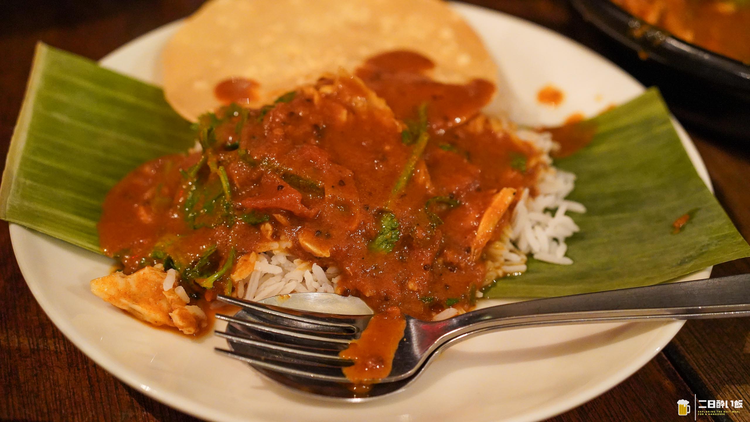バスマティライスにカレーをかけ、パパドを砕いて混ぜながら食べると、香ばしさとスパイスの刺激が重なって至福!!