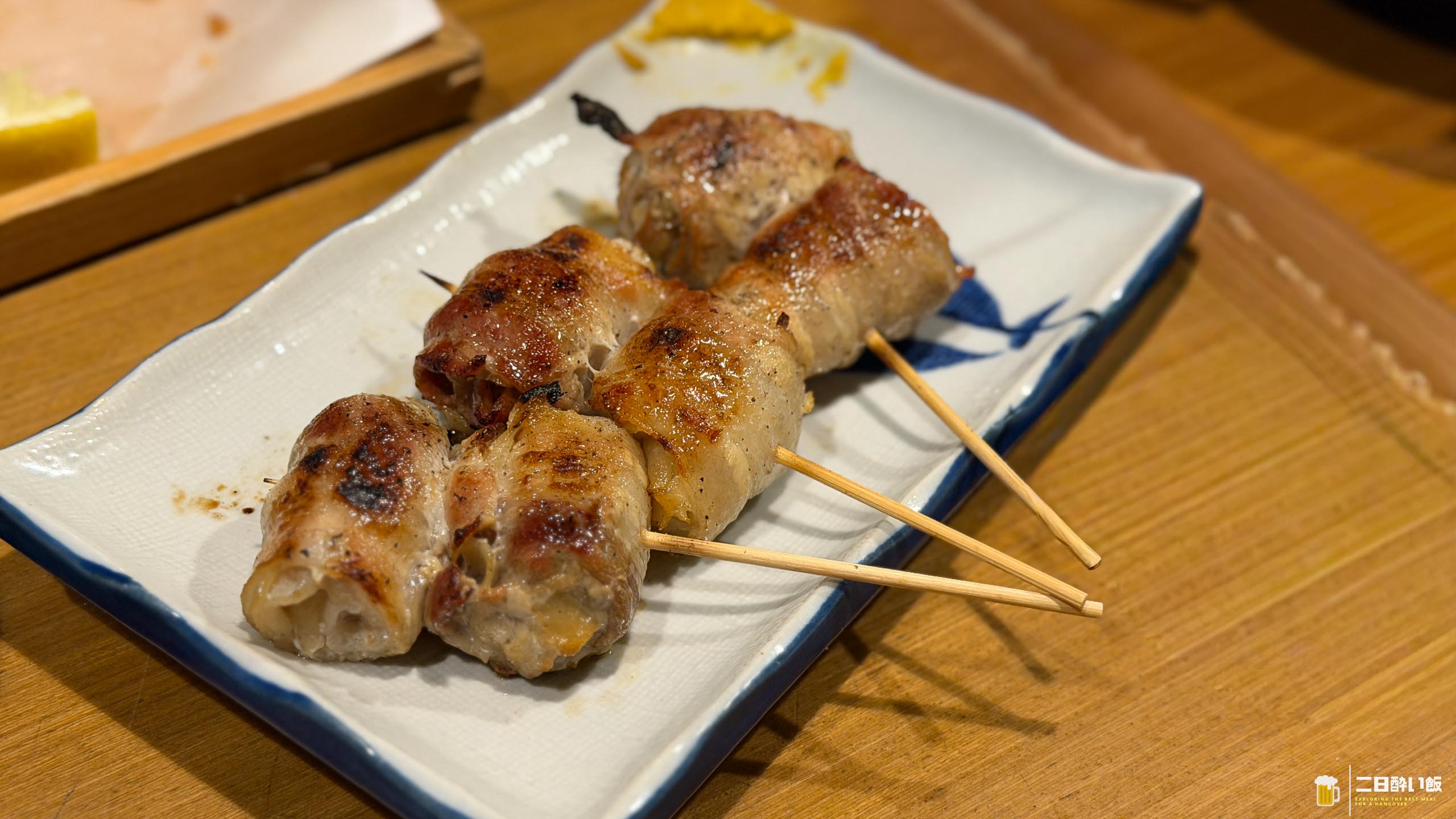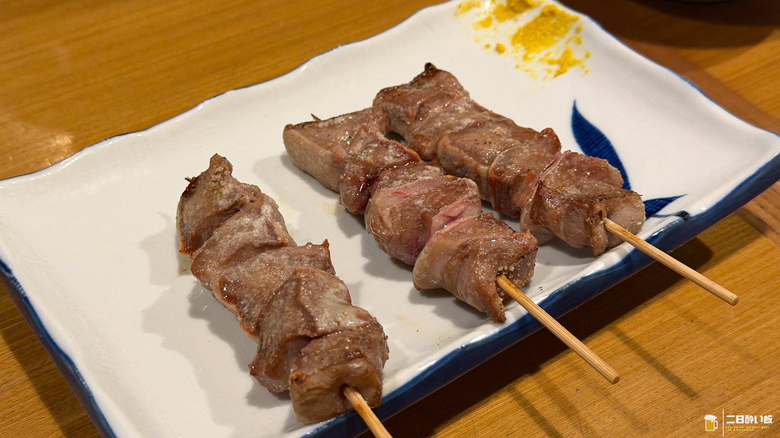このネギ軟骨がおいしいんですよ。コリッコリのなんこつがネギに巻かれている串で。なんこつの歯ごたえと、中のネギの柔らかさ。いい感じに振られた塩とネギの甘さとが合わさってめっちゃ美味しい。