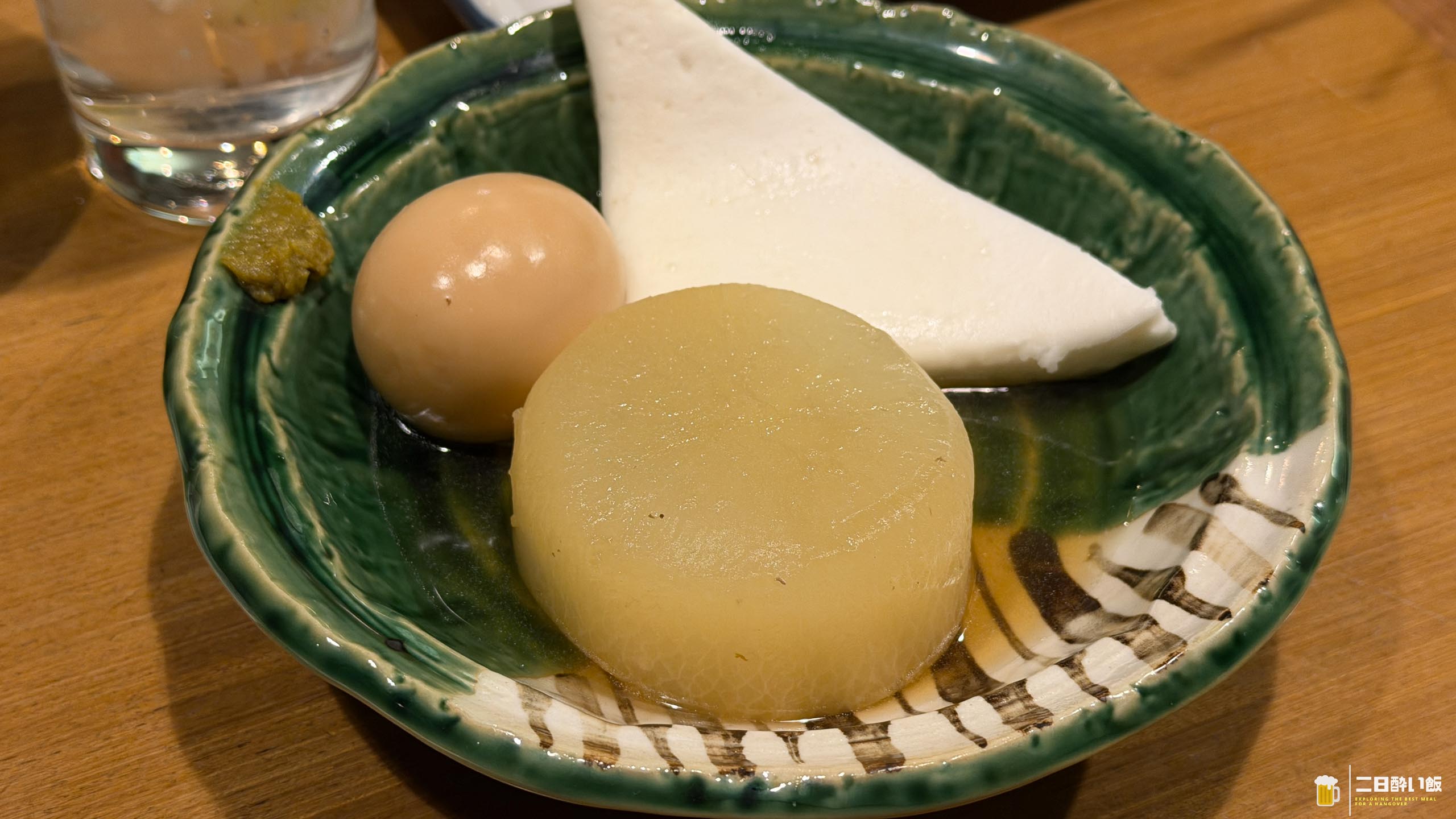 どて煮込み。三六の名物です!煮卵とガーリックトーストを付けますか?って聞かれたんですが玉子はおでんにしよっていうのでプレーンな状態。麻布十番の三六は全部人数分に取り分けてだしてくれるのがね、良いんですよね。こちらも小鉢で人数分に分けてだしてくれました。ありがたい!肝心のお味はとっても甘みが強い煮込み。塩分よりも甘みが来ます。多分ガーリックトーストとかに付けて食べるくらいがちょうど良さそう^^もうちょっと塩分強い方が好きかなぁ。