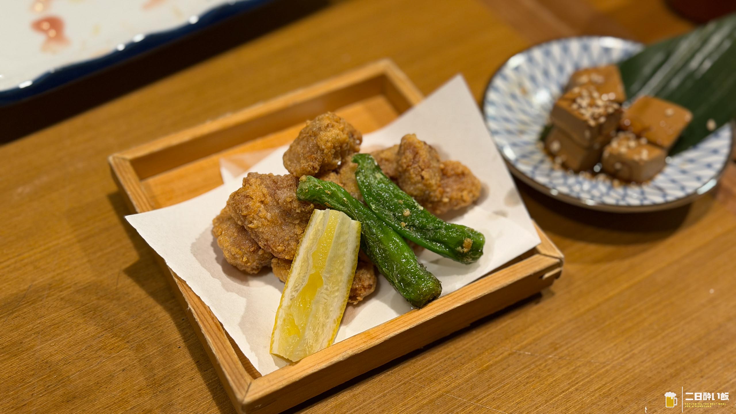 もつの唐揚げ、外はカリッと、中はふにゅっと。噛めば噛むほどモツの味が感じられておつまみにちょうどよい。