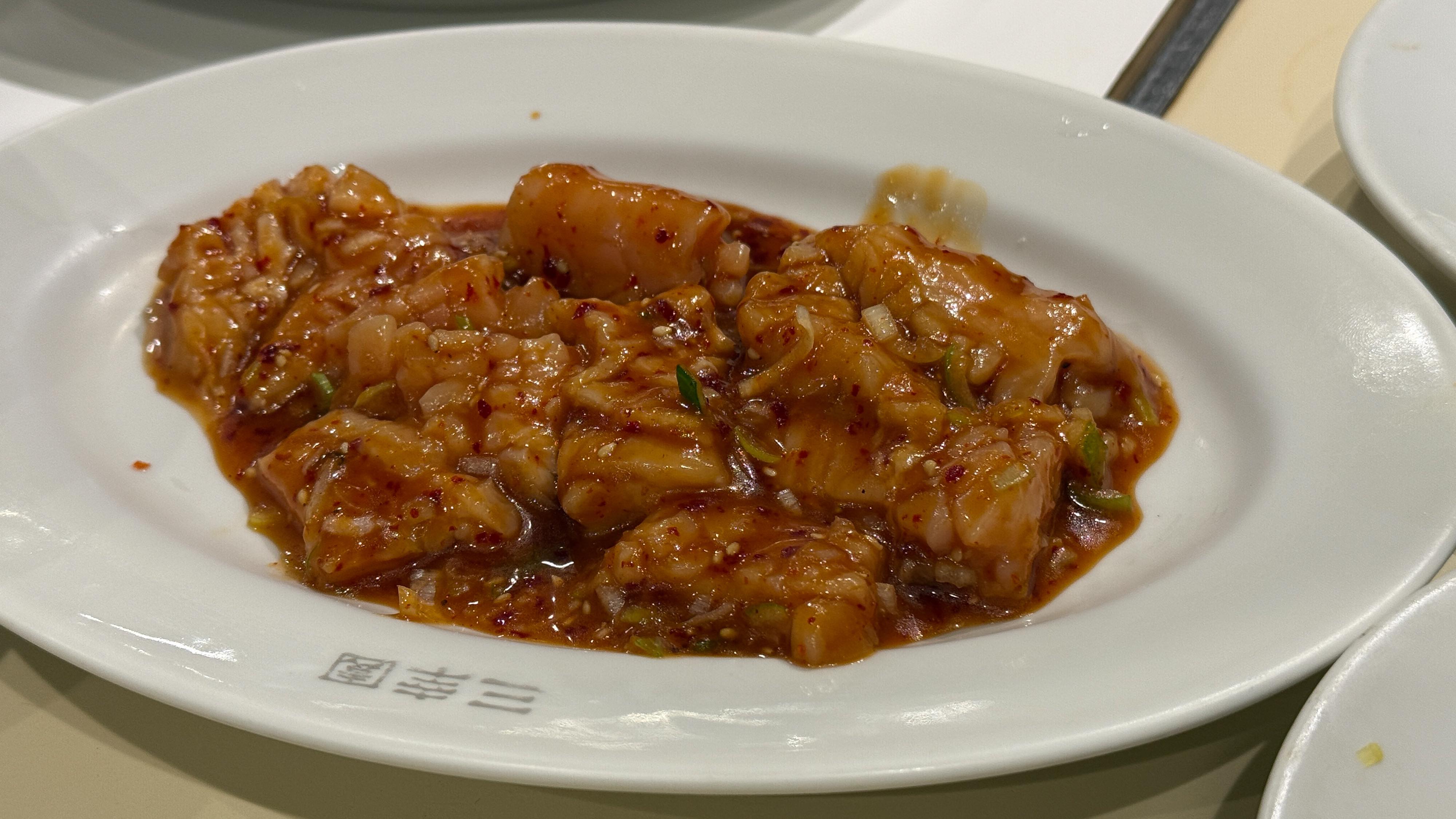 よく焼いて、コリコリっとした感触をたのしめる一品。焼肉来たら絶対頼むホルモンの中のひとつ!