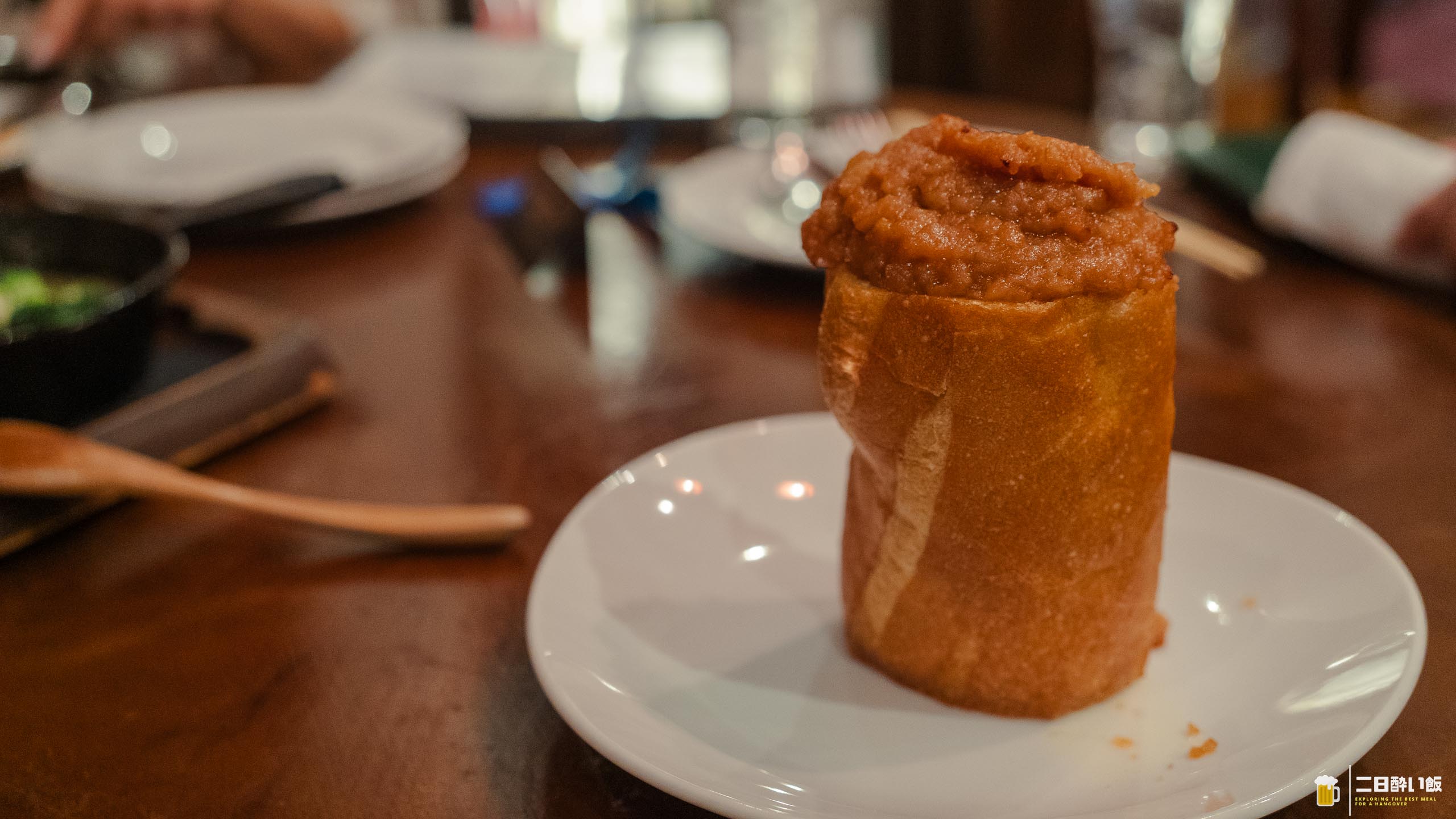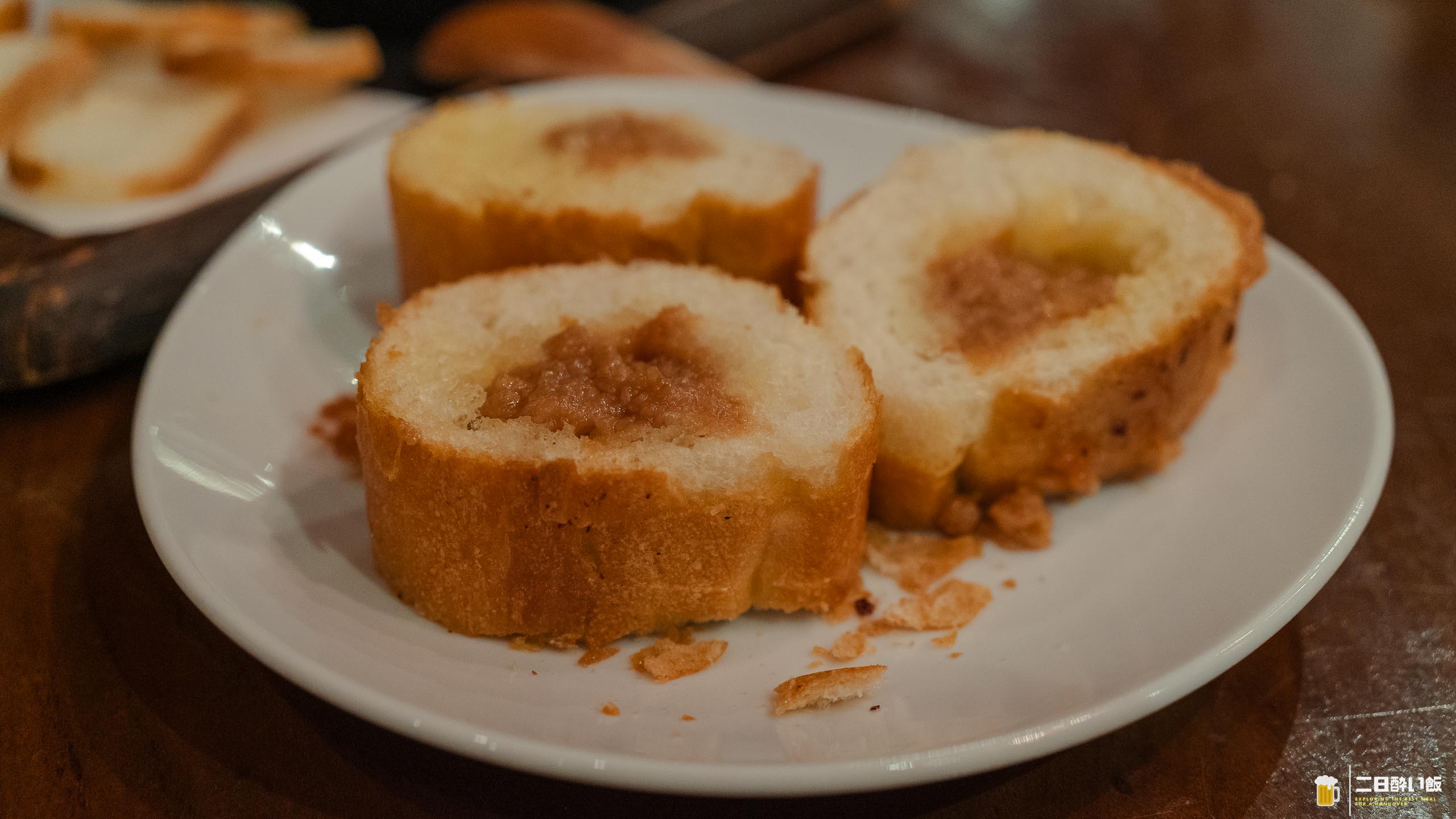 名物のガーリックトーストは外せませんね!お店の写真とかでもよくでてくるんですよね。これ。流石に一人一個は多いかな?と思っていたらみんなでシェアして食べれますよって言ってもらえました。この上のにんにくをパンの中に押し込んで、三つにカット!