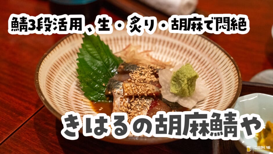 目の前に出された瞬間、まず驚くのは艶めくサバの美しさ。透き通るような身の奥にうっすらと脂が光り、香ばしいすり胡麻がたっぷりまとわりついている。箸でそっと持ち上げると、身がほぐれるように柔らかい。