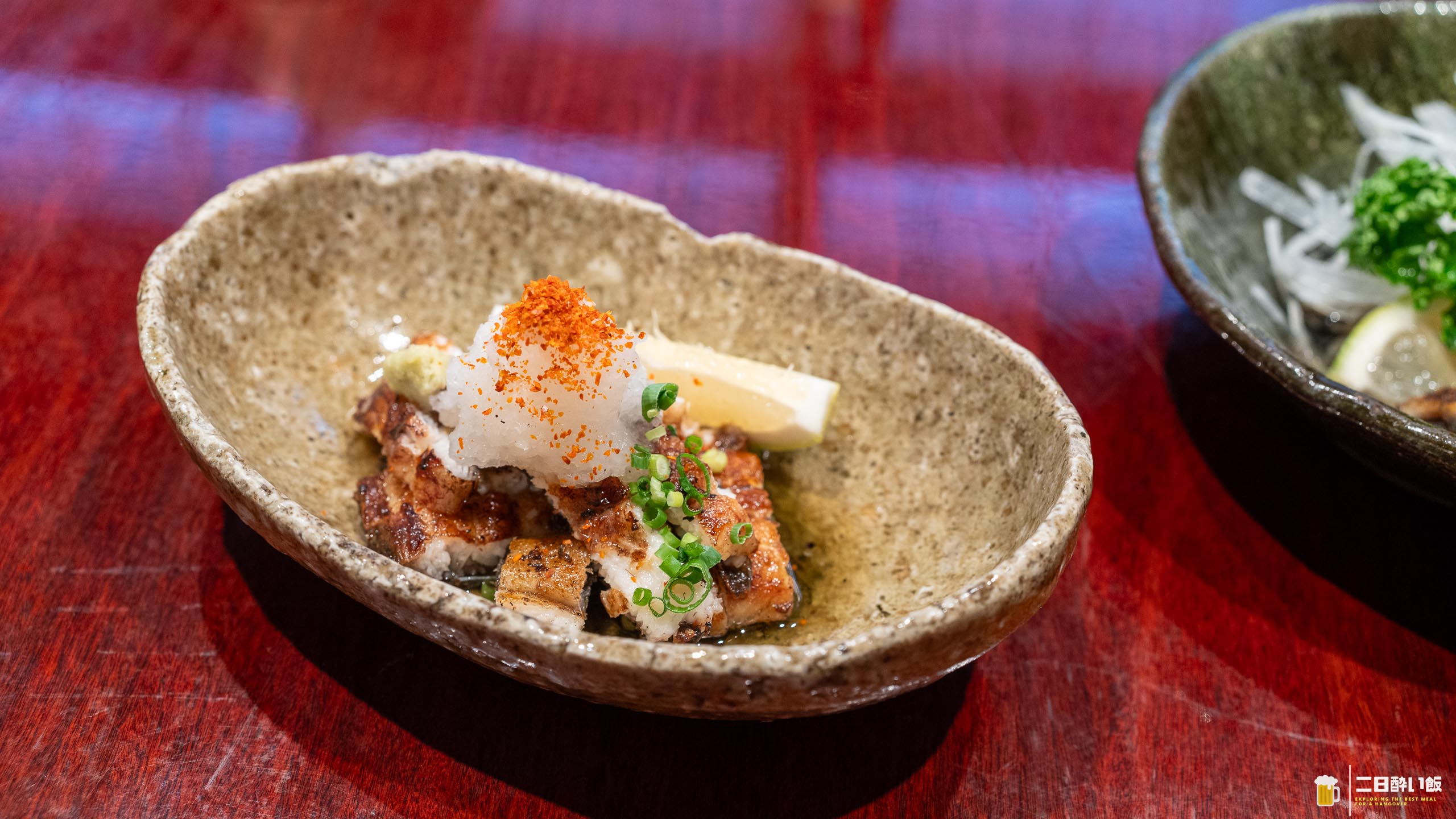 こっちは、先程の酢の物よりももっとさっぱり。鰻の香ばしさと大根おろしの爽やかさがぶつかり合いながら溶け合います。わさびで食べると、鰻の脂がすっと消えて旨みだけが舌に残るので良いですよねぇ。ちょこっと載せてくれた唐辛子がまた良い。白焼きの香りと大根おろしの清涼感、そして脂の甘さが調和!こちらもおいしい。