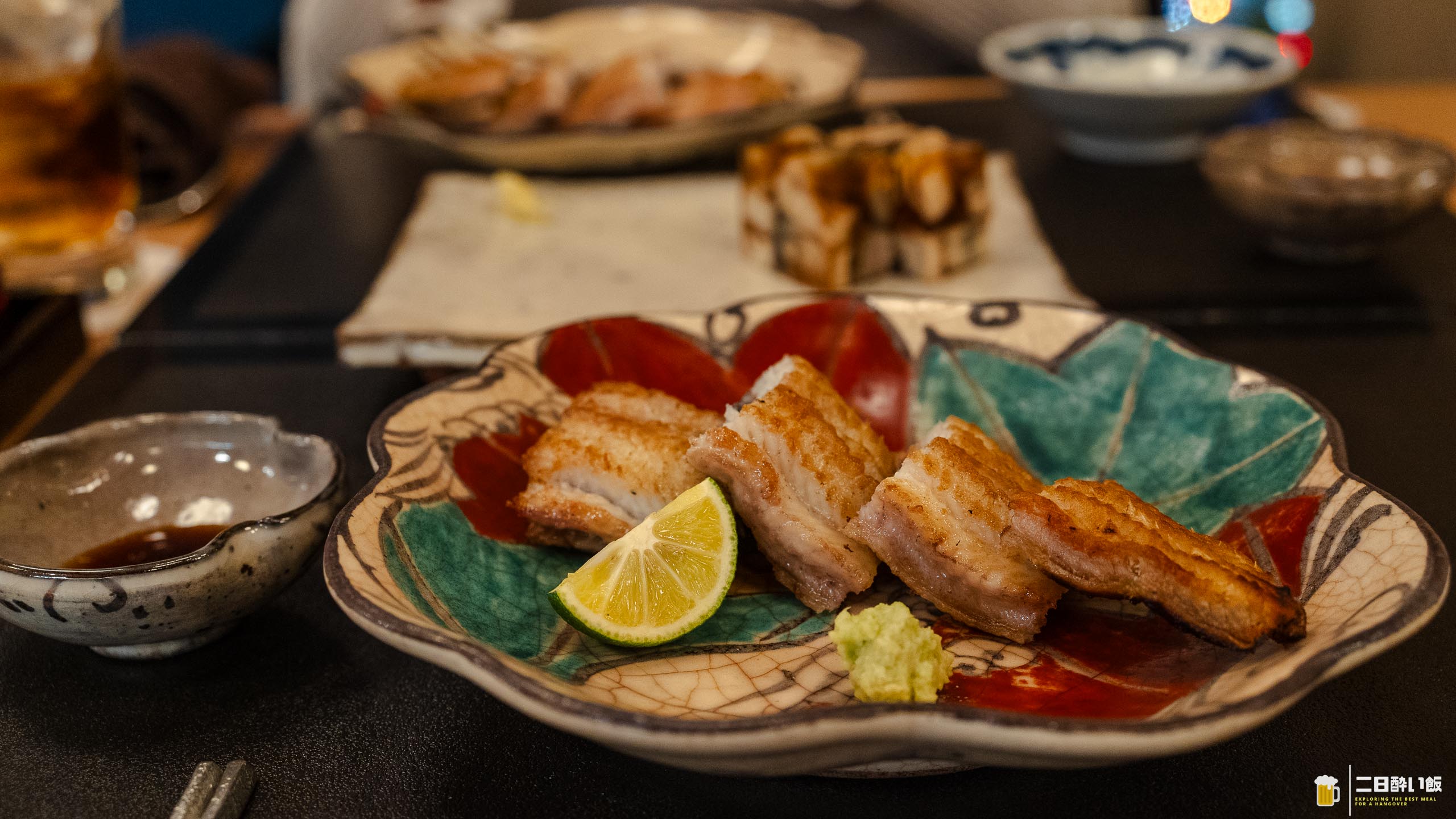 コースについてる白焼きです!合わせる調味料はお塩と、わさびと、スダチと醤油。まずは一番尻尾側の部分をお塩で食べてみてくださいとの案内通り塩で。焼き上がりは皮目が香ばしく、身はふっくらと柔らかい。タレがない分、鰻そのものの脂の甘みと旨みがダイレクトに伝わってきます。口に含むと、当然余計な臭みは一切なく、上質な脂がすっと溶けて後味は驚くほど軽やか。おいし!この後の残り三切れ、山葵塩と、スダチ塩と山葵醤油でそれぞれ頂きました!山葵も美味しんだよなぁ。脂の輪郭がきりっと引き締まると言うか。日本酒好きな人なら日本酒行くんでしょうね!わたしは麦で^^