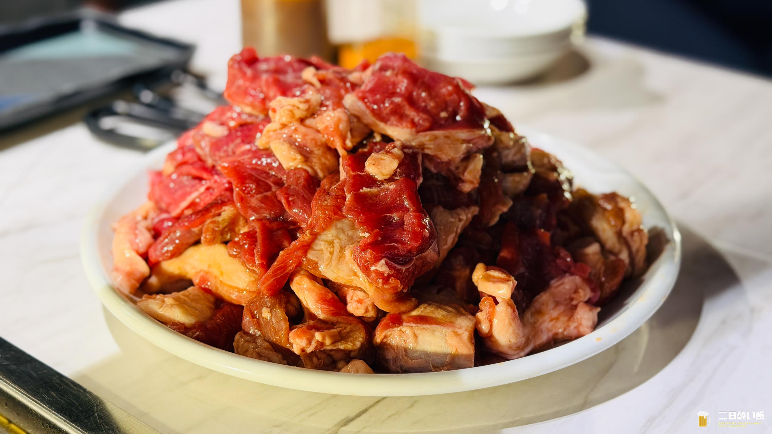 これで3〜4人前。最初に持ってきてくれて、これをこのまま焼くんかな?と思ったら、奥で切ってきてもいいですか?とのこと。あー、なるほど。このままじゃあ、焼けないから小さくカットしてくれるのでした。