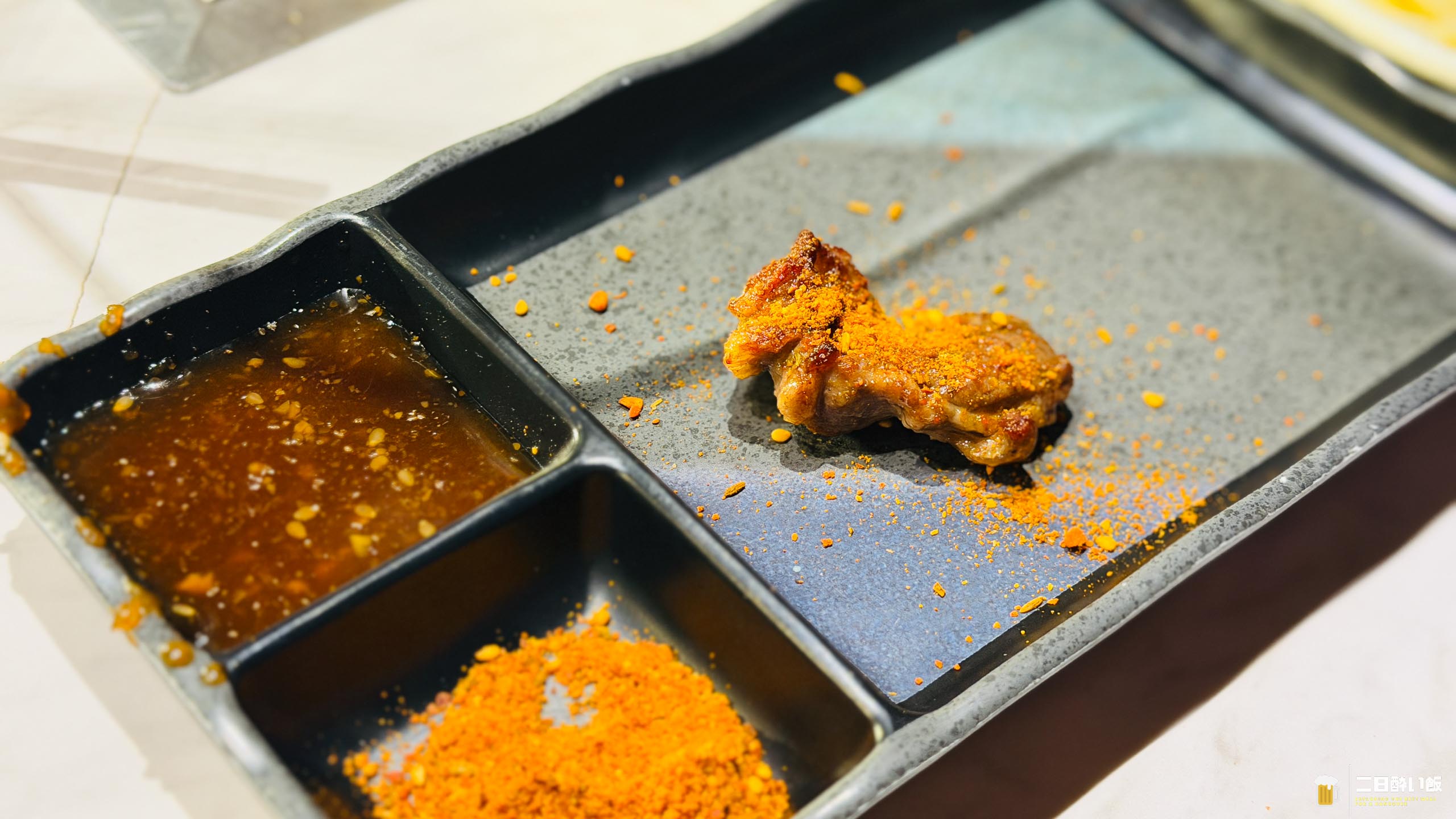 焼いたお肉はBBQソースと、辛い粉をかけて頂きます。うん、うまい!