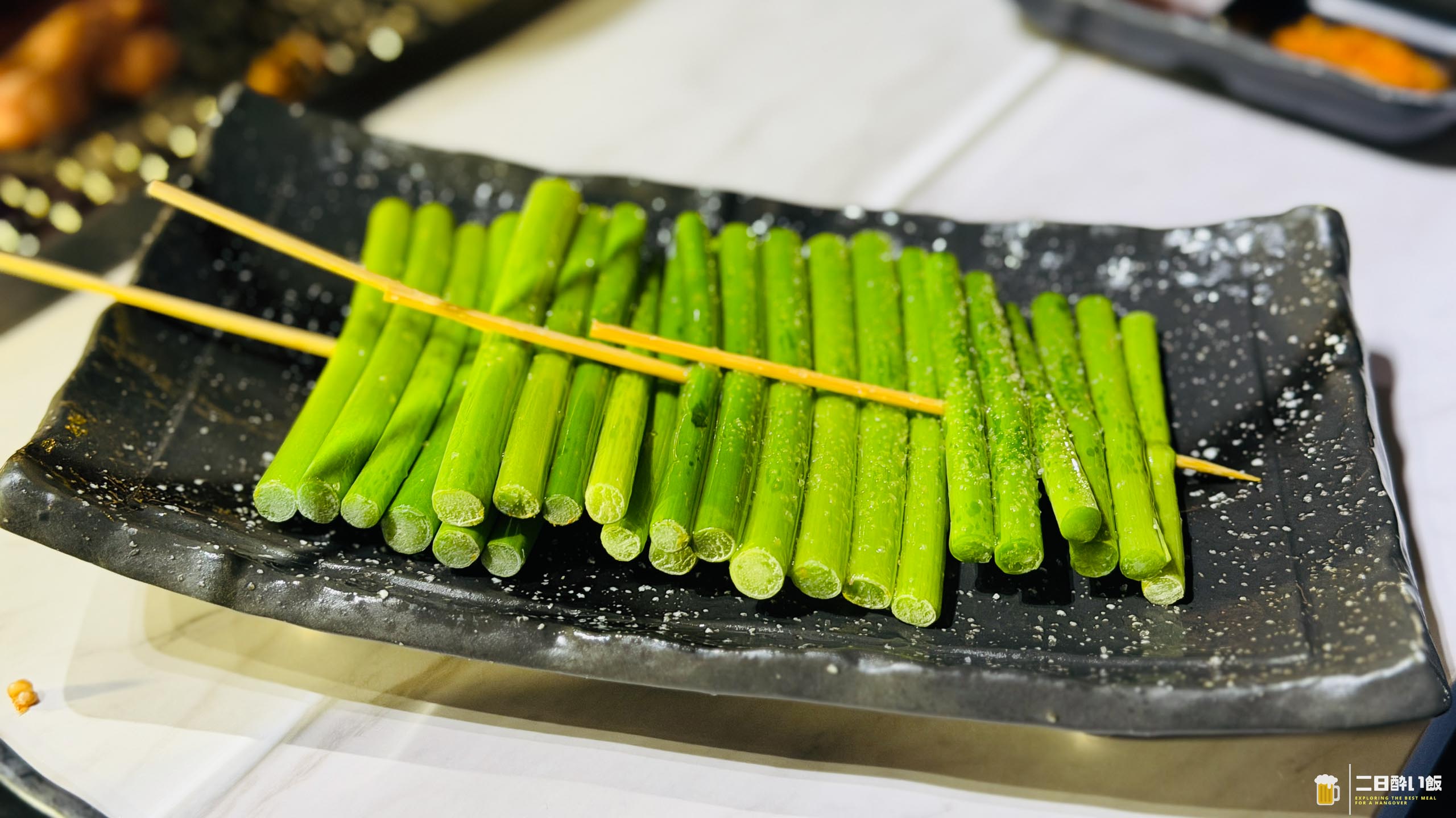 同じグリルで焼いていくニンニクの芽。
