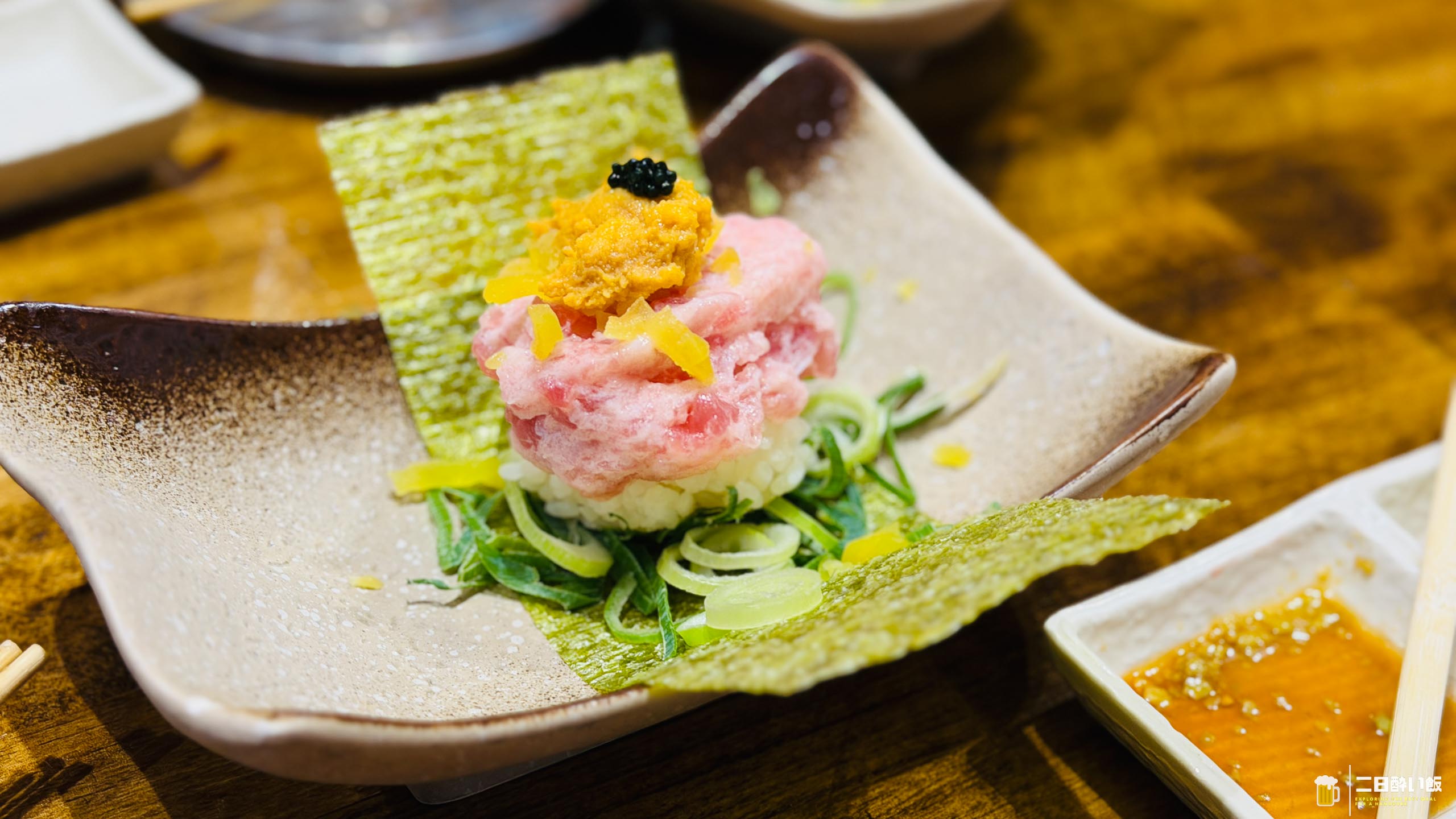 ご飯とネギはちょっとカピっていて、ねぎとろは油が結構多い気がする。ウニはちょこんと、上にはキャビアぽいものが乗っています。不味いなんてことは無いんですけどクォリティがちょっと付いてきてない気がしますねw海苔がすっごい色も厚さも薄いのよwこんな海苔売ってるんだというwww