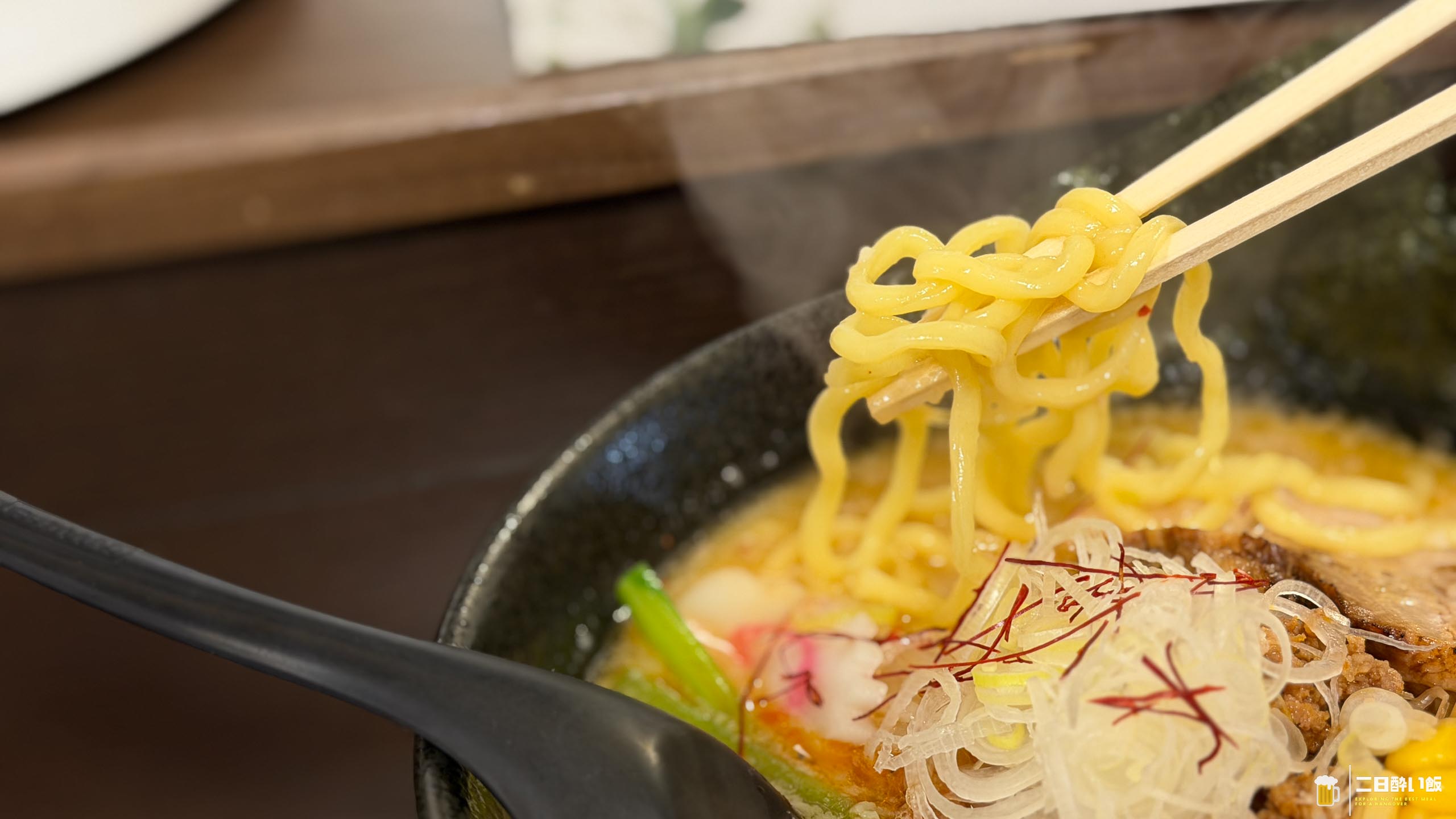 まずはスープ。レンゲですくうと、とろりと濃厚な粘度。口に運べば、うまい!味噌は信州の極上白味噌を使っているようで深みのあるコクと、動物系スープの分厚い旨味が波状攻撃。表面を覆うラードが熱さをキープしているのも良い。ニンニクと生姜が効いたパンチのある味わいは、まさに渇望していた「あの味」!