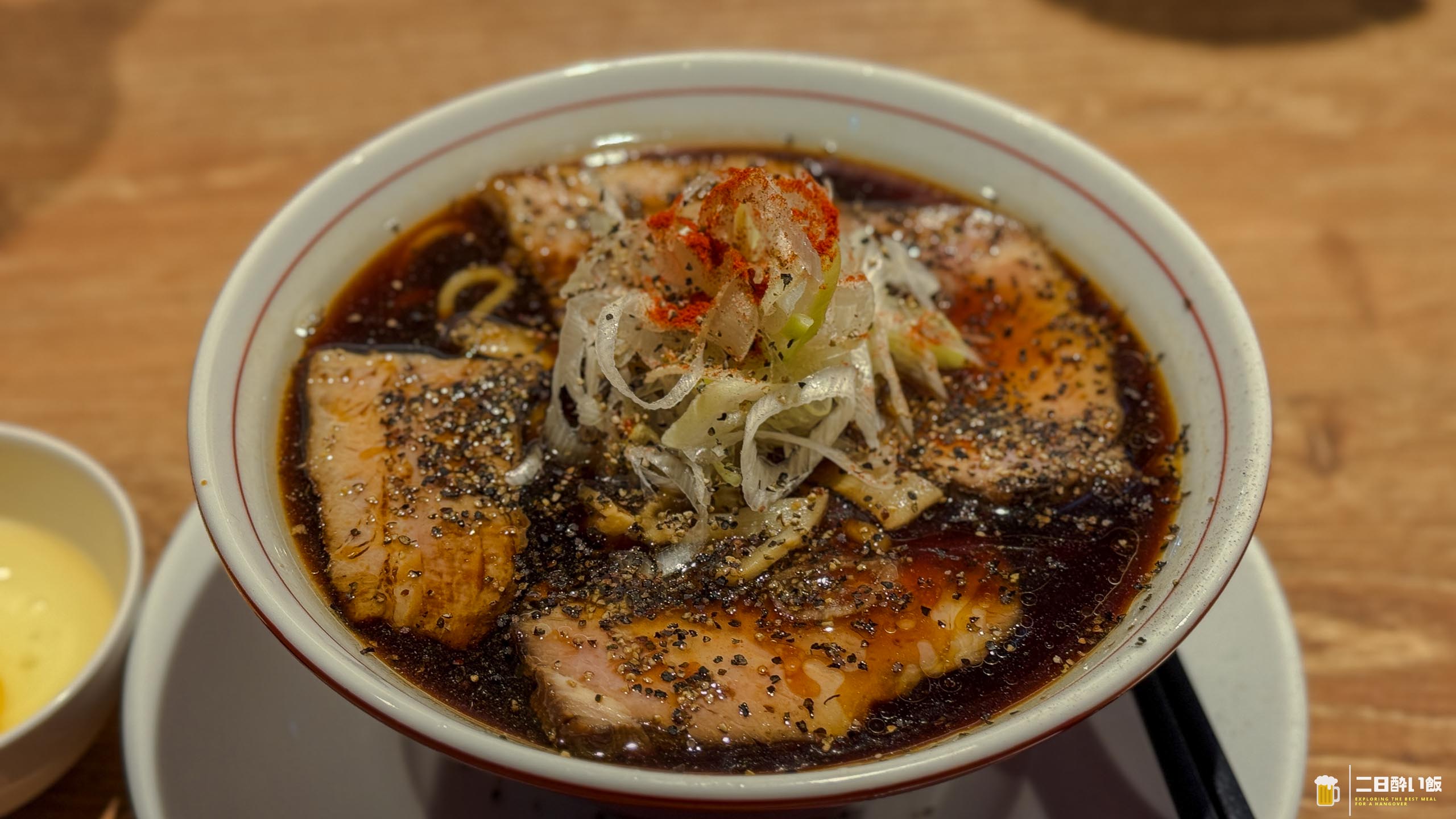 胡椒系のブラックスープなのであれば、生卵も必要ですね。+100円の生卵もお願いしておきました。