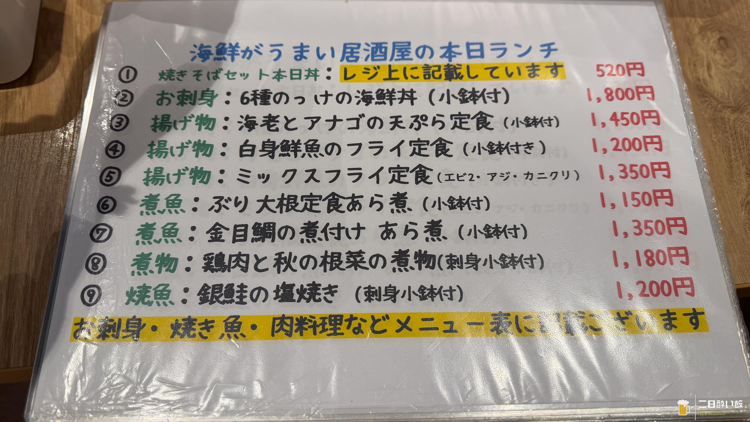 毎日豊洲で仕入れてきているお魚たちだそうで。焼き魚から、お刺身、天ぷらにフライなど、お魚であればなんでもござれなメニュー。メニューめっちゃ多いです。おつまみ入れたらすごい数になるのでは!?セットメニューも豊富で、ごはんと焼きそばのセットや、焼きそばと海鮮丼、焼きそばとローストビーフ丼、焼きそばと牛すじカレーと、焼きそばはおかずであると言わんばかりの重量級セットメニューもたくさん。とはいえ、焼きそばと何か、のセットにするのはちょっと食べきれないかもなと思ったので、自慢の海鮮系のメニューをいただくことにしました。