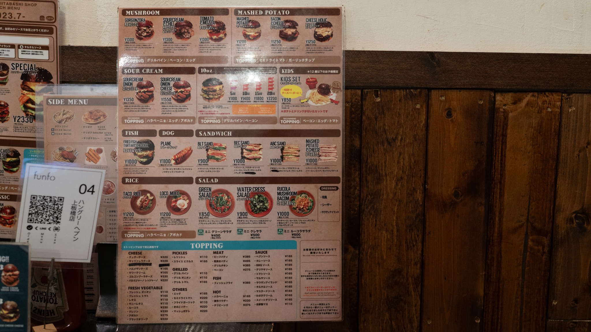 上板橋の駅前は有名なラーメン店の中本と、そのすぐとなりにハングリーヘブンという有名なハンバーガーショップもあってめっちゃレベル高いですね!グルメバーガー食べたい!と思ったときに駅前にまるでチェーン店のバーガーのような感覚で気軽に使えるお店があるってとってもよいですな!とにかくメニューが沢山あるので、少しずつ制覇していきたい!