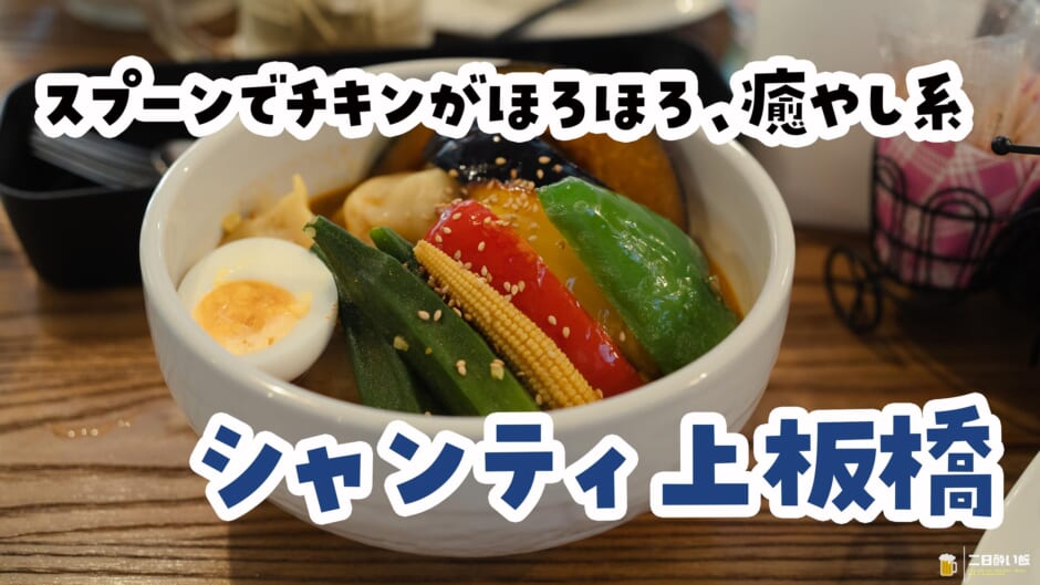 二日酔い飯です。上板橋、最近結構来ているんですが、今回はこないだ行った「魂の中華そば」の隣りにあるスープカレーのお店「シャンティ」へ。ちょっと早めにランチ食べよっかなと思ったんですが、11:00から空いているお店ってあんまりないんですよね(大体11:30〜)そんな中、既に空いていたこちらのお店でスープカレーを食べることにしたのでした。