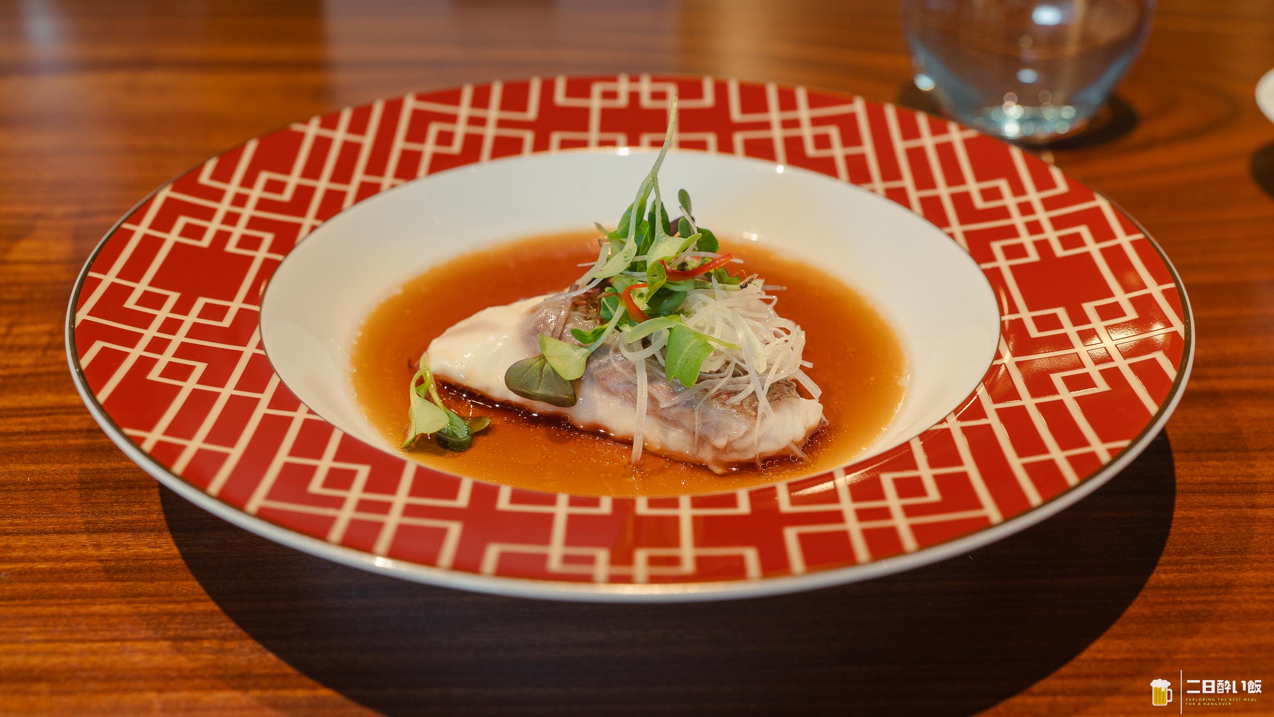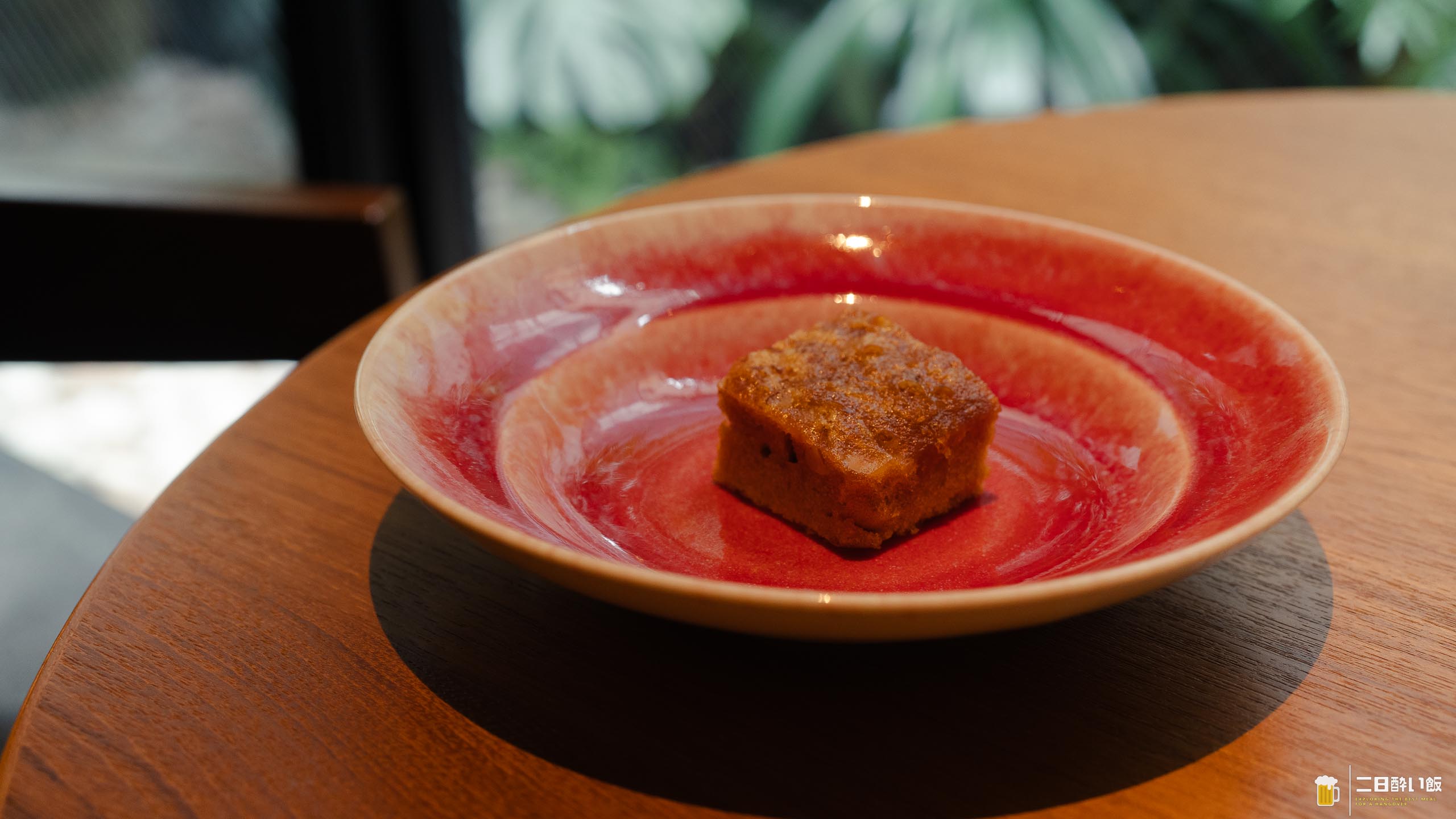 愛媛県産のタイを蒸したものに、オリエンタルなソース(九州の醤油とナンプラーと香港のシーズニングソースかな)をかけて食べる、タイとかベトナムっぽい雰囲気のひとしな。タイは3分20秒蒸したそうで。ほんとうにホロっと崩れる絶妙な火入れ。上に載っているのはパクチーと、あっつい油をかけたネギなど。ナンプラーの香りとパクチーの香りがオリエンタル感だしていて、甘目の醤油とでつくったソースが美味しいので、スプーンですくってソースと一緒にお魚を食べると最高!