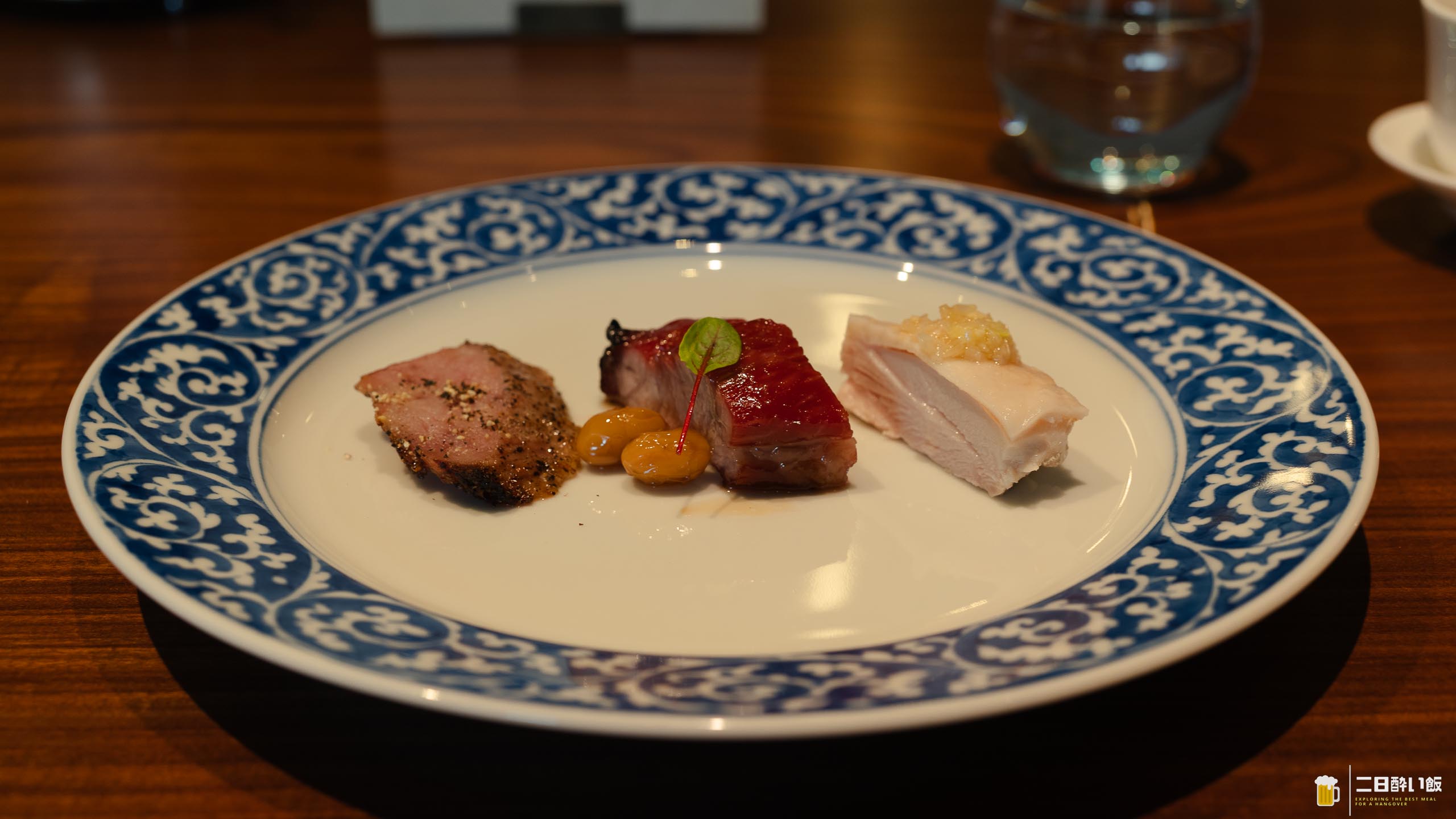 左から、豚トロ、自家製釜焼き叉焼、コールドチキンの葱ソース。真ん中の豆ぽいのは口直しのシナモン大豆。