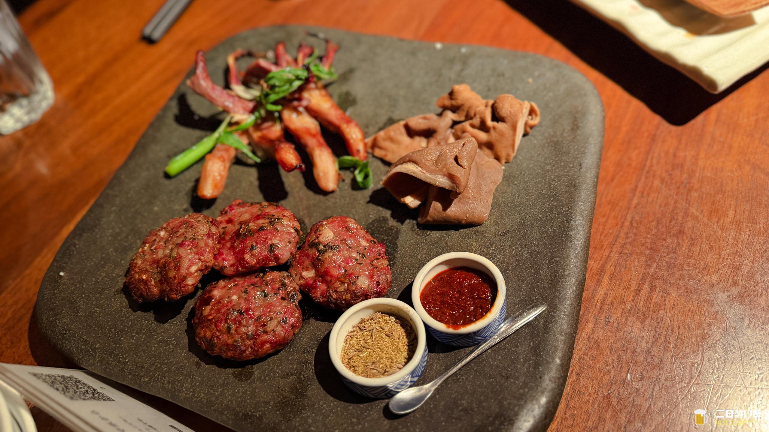 左上が、名物の鴨の舌w中々食べないですよねぇ。さらに、その隣がモツルーロー。ルーローハン的な感じに付けたモツってことなのかな。で、したのハンバーグみたいなのが羊のつくね。クミンやらが混ざったスパイスや、ピリ辛タレを付けて頂くんですが、鴨舌はどうだろう、全然美味しいんですけど、不思議な感じ。羊のつくねにスパイスを掛けて食べるのが一番美味しかったかも。