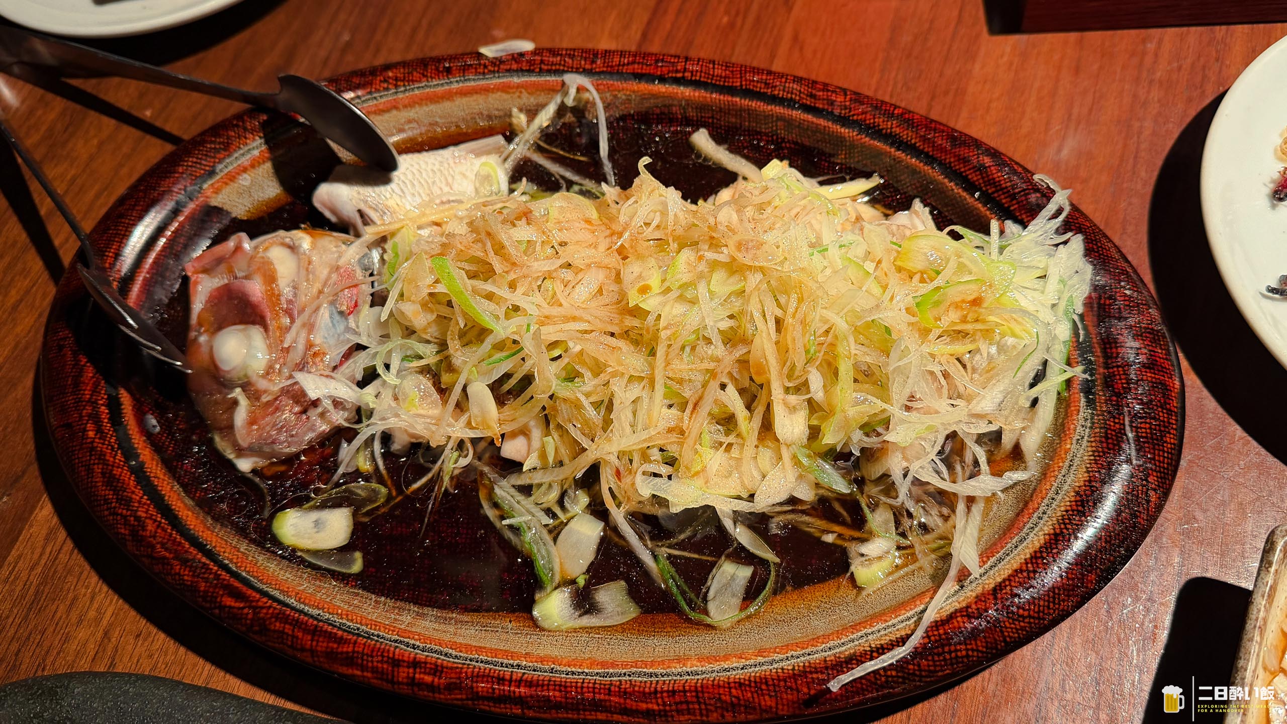鯛の蒸し物。たっぷりと載せられたネギの上からあっつい油をじゅーーーーーー!っとやったんでしょうね。中華風のソースも美味しいし、ふっくらとしたタイの白身によくあう。そこに油で香ばしさがついたザクザクのネギ。たまりませんね!