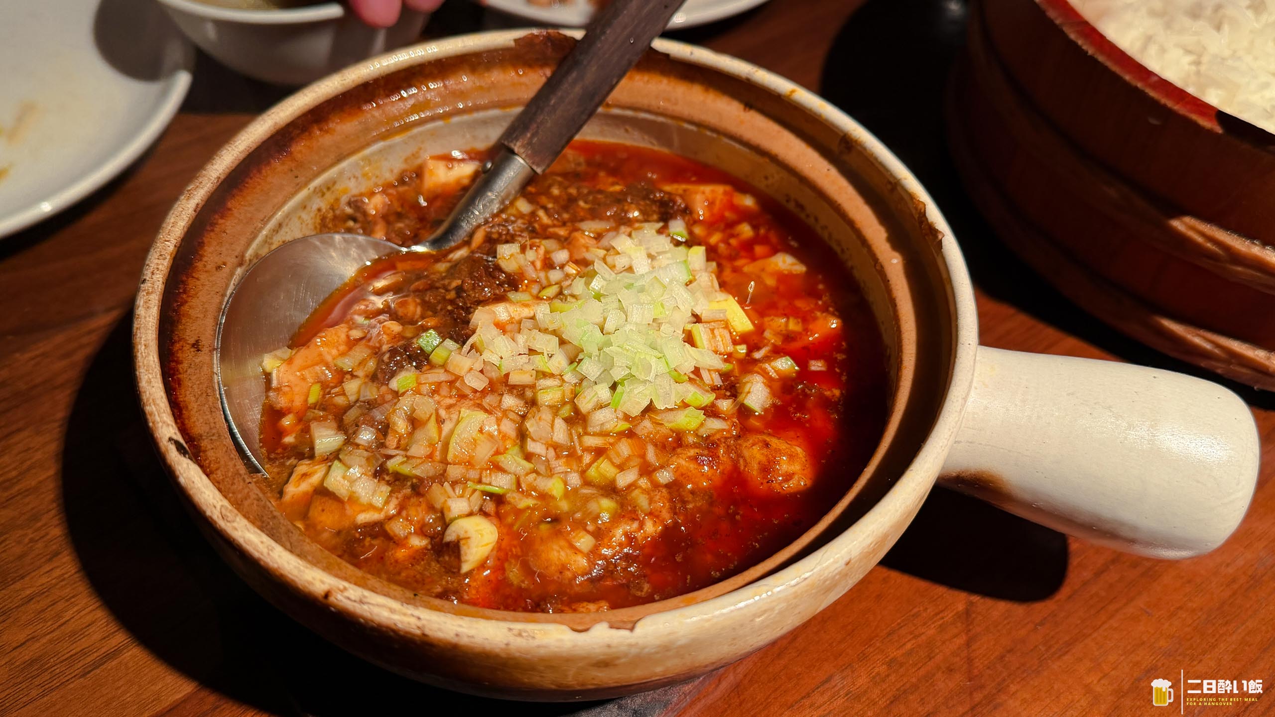 赤いですが、そんなに辛くない!甘みも感じる麻婆豆腐。めっちゃ美味しい土鍋麻婆豆腐ですが、いわゆるノーマルな麻婆豆腐の印象。山椒がもうちょっと効いていればうれしいかな。味付けはしっかり目で、ご飯、というか香り豊かなジャスミンライスなのですが、それに合うんです。で、そのご飯がすごい量^^