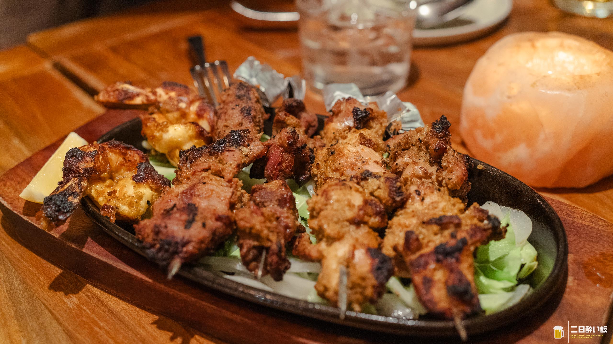 チキンの串が二本(右側)、砂肝が一本(真ん中)、ラム一本(その左)、エビ二個(一番左)がついたセット。複数人で来ているなら、これを頼んで串から外してみんなで摘んでいくのが正解なきがします。どれもスパイスにしっかり漬け込まれているからか、柔らかくてスパイスの焦げた香りも合わさってとっても美味しい。