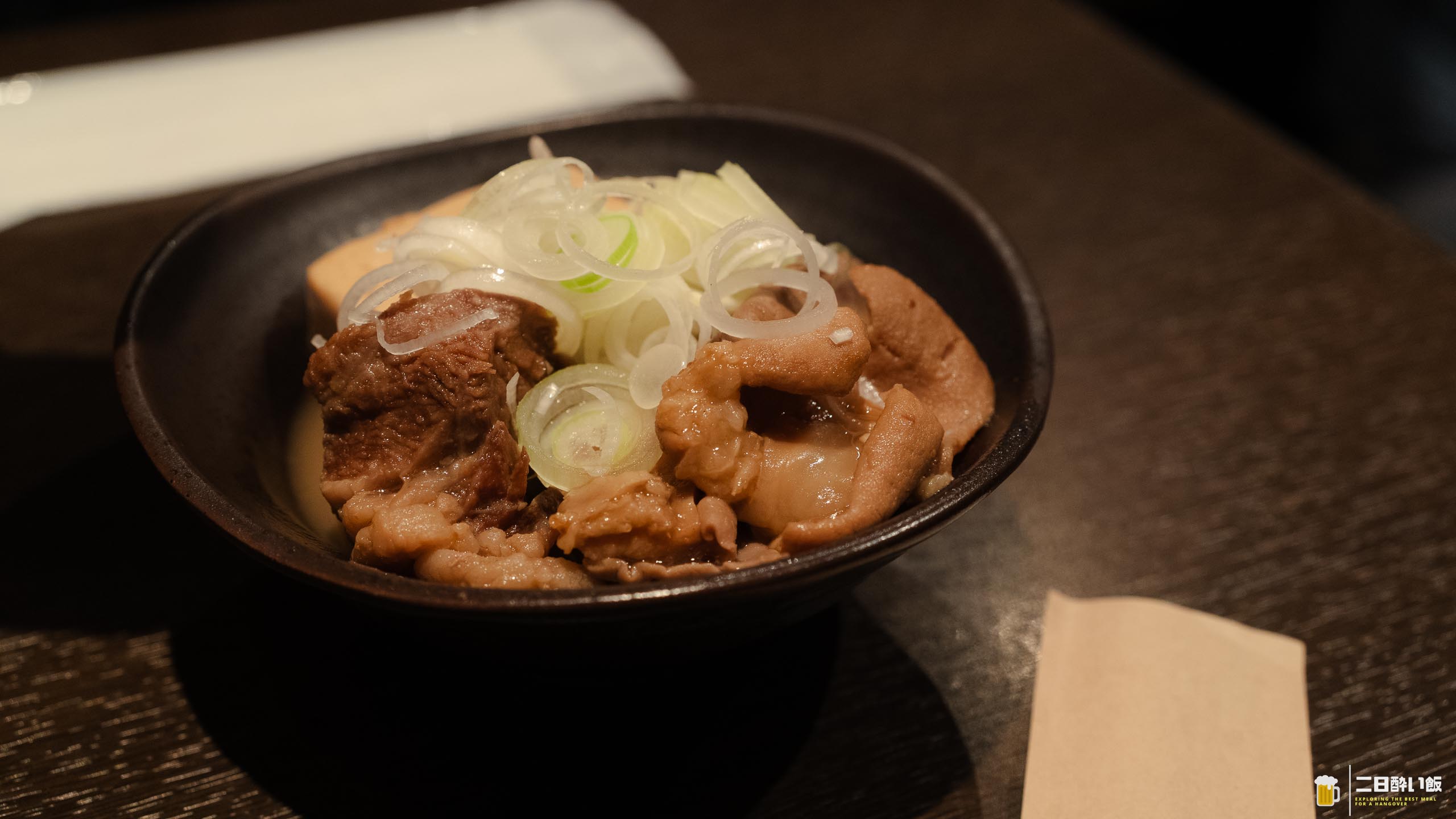最後は気になっていたもつ煮込み。箸で持ち上げるとほろっと崩れる柔らかさですが、煮崩れする手前で止めてあり、食感はしっかり残っています。味噌ベースながら塩味は控えめで、もつの脂の甘みとコクがじんわり広がる設計。もつ以外にもほろっと柔らかいお肉が入ってるんですよねぇ。豚バラかしら。甘みが強い味付けてお酒にも合う!!!