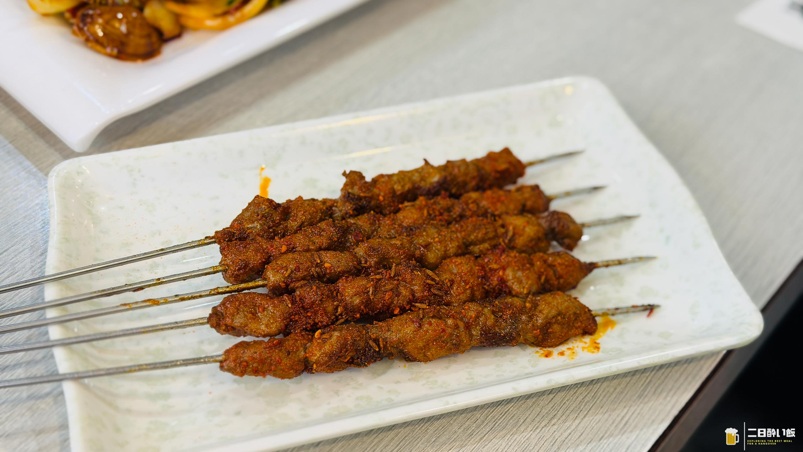 あるあるな羊肉の串。絡めにしたんですが、クミンの香りと羊肉、あうー!