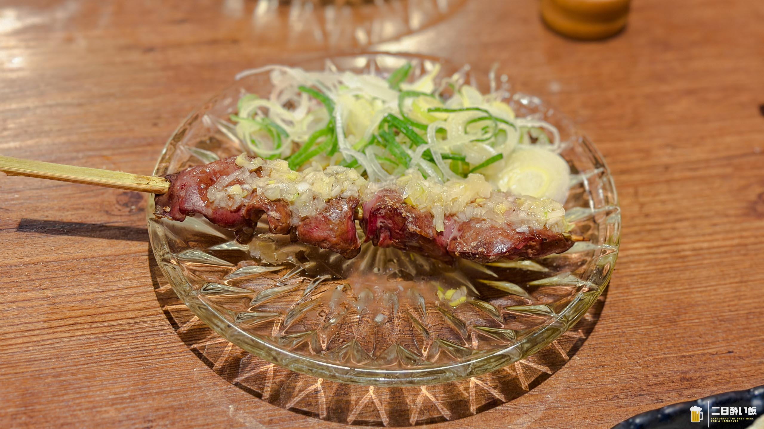 で、ぱくりと食べたら、うん。おいしい!中が柔らかくて触感も良いし香りも良い。塩でレバの旨みも引き立って。しっかり濃い味のレバーだからこそ、ネギにも負けない。あー、いいですねこれ!