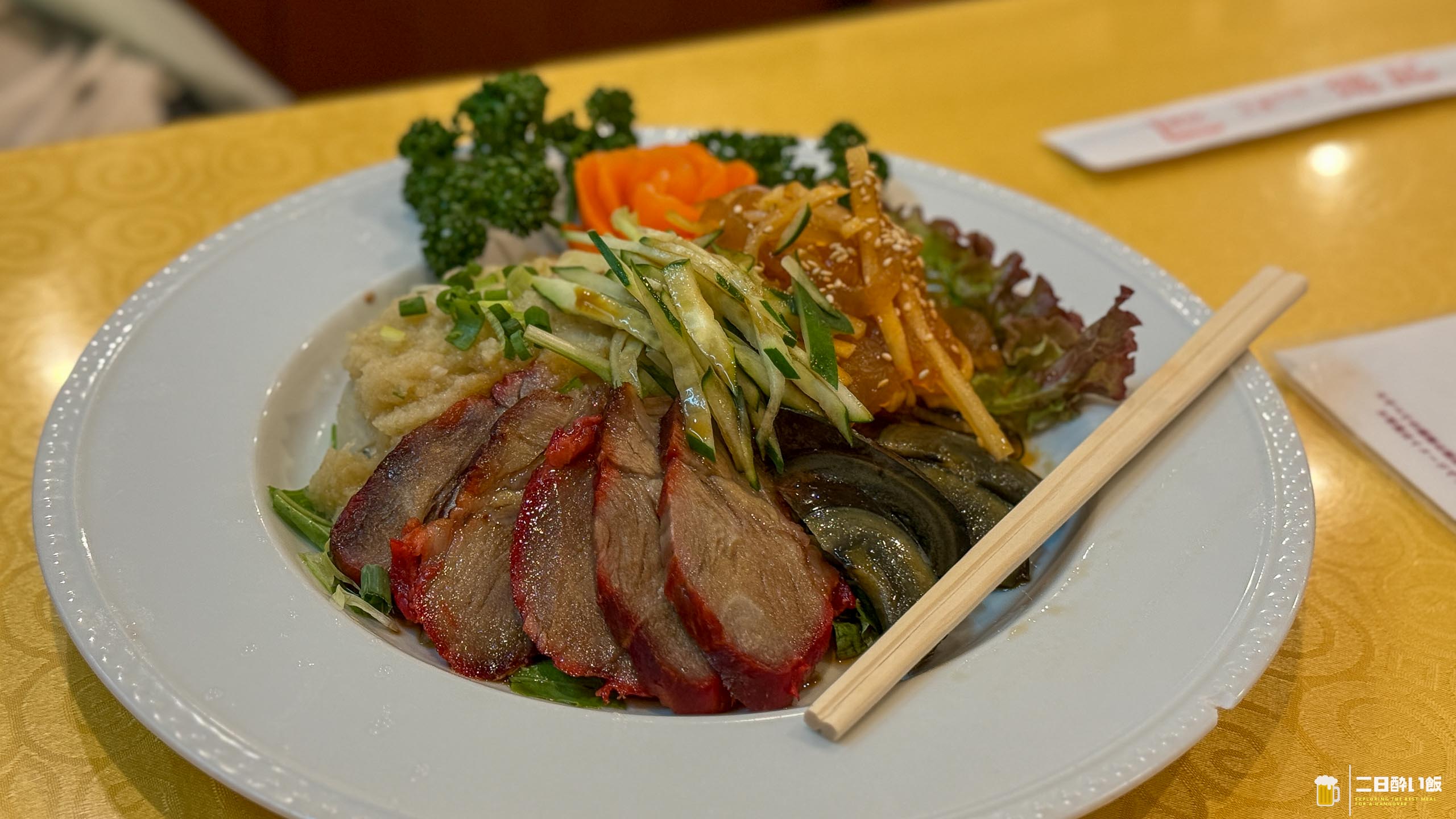 昔ながらの赤く着色された広東風特製チャーシューに、ピータン、広東風蒸し鶏にクラゲの冷菜。