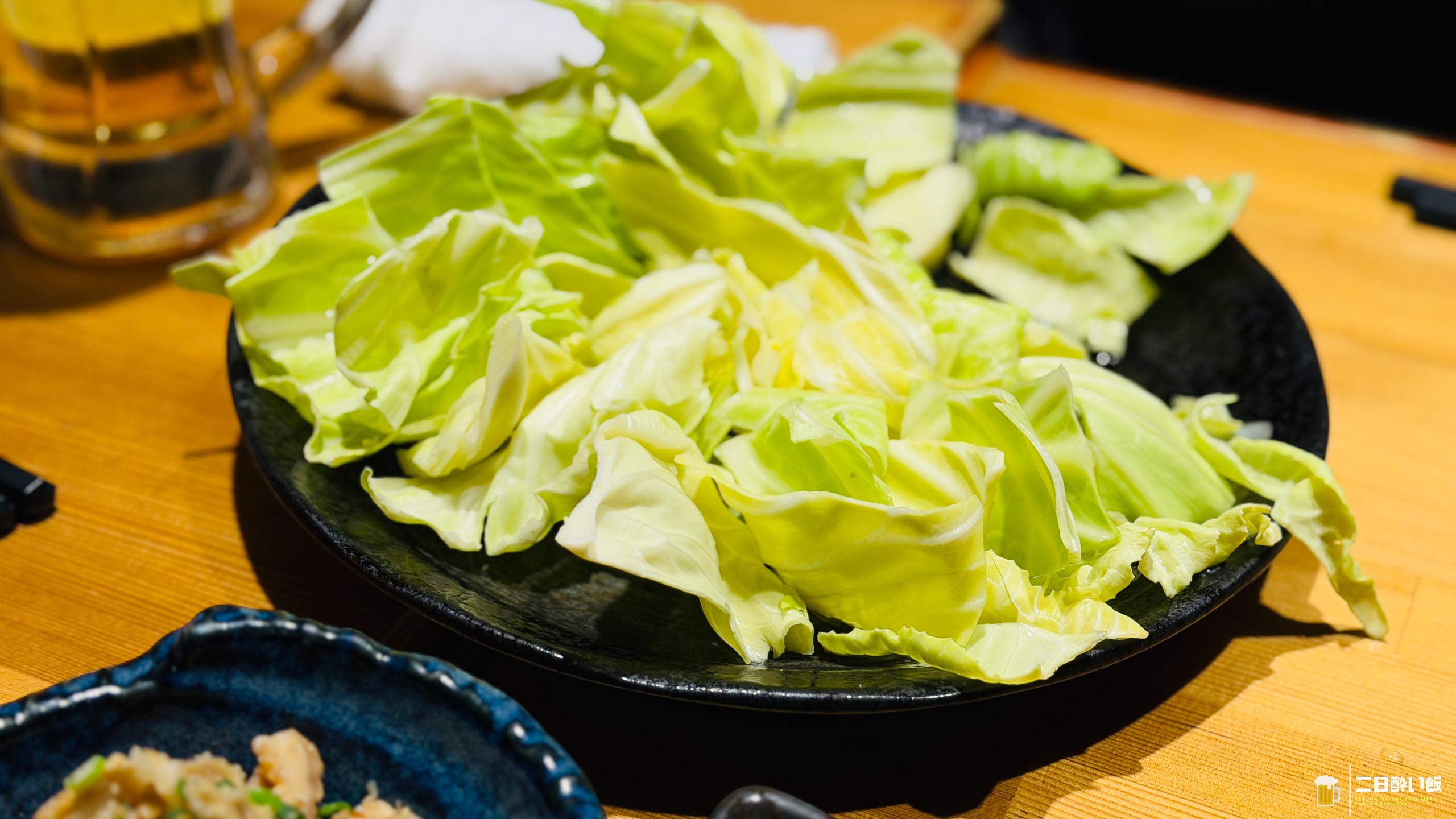 鶏皮とビールを注文してすぐに、お通しのキャベツ!